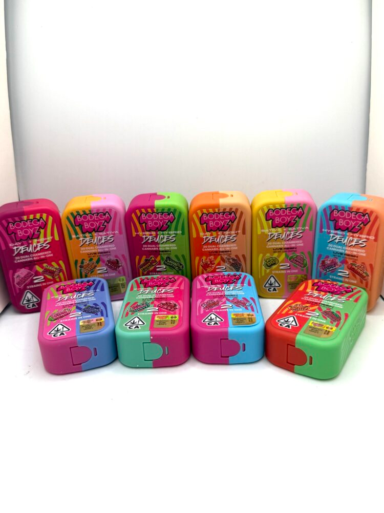 Bodega Boyz 2g Dual Chambered Disposable delivers innovative two-strain vaping with independent 1g chambers (2g total) at 88% THC. Switch instantly between daytime and nighttime strains with one button press. Premium quality meets maximum convenience.
